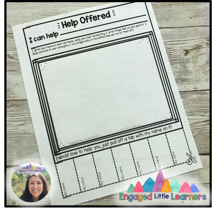 I chose Wednesdays because we had library on that day (and bonus for the alliteration!) I used a 20 minute block to do warm fuzzies. The 1st 5ish minutes was brainstorming with me and the rest of the time was used for everyone to write. The warm fuzzy recipient got to go out in the hall with my super supplies to color or read so that they wouldn’t hear all of the wonderful things we had to say about them during our brainstorm session! If my kids didn’t finish in that time, they could finish when they were done checking out their library book. We built a culture of getting them finished so that the warm fuzzy person could take home their special book!